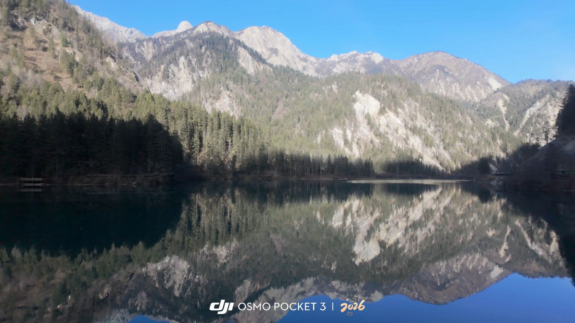 第三站是九寨沟。冬天的九寨沟人很少,有些热门景点甚至不需要排队即可拍到绝美景色。观光车走的右线,由于冬季防火,去不了原始森林,只得在天鹅海下车。天鹅海并没有结冰,湖面如镜,倒映岸边的山与树。